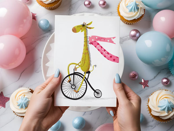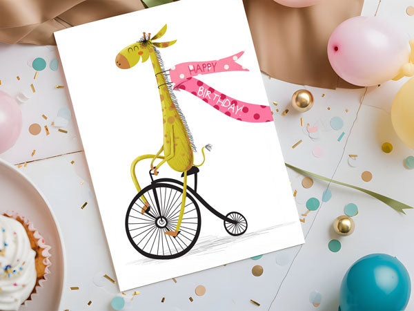 Looking for a card that stands tall in the crowd? Our Custom Giraffe Birthday Greeting Card is the perfect way to send big birthday wishes with a dash of charm. Personalize the inside message to make it uniquely yours, whether you're celebrating a friend with a quirky sense of humour or someone who just loves giraffes. It's the card that will make anyone smile, guaranteed!