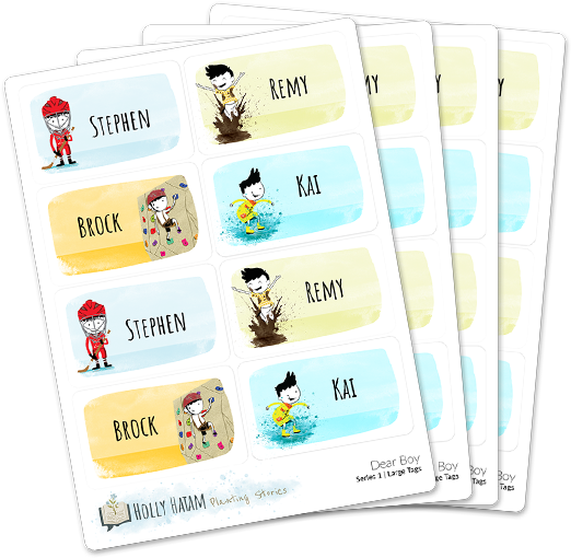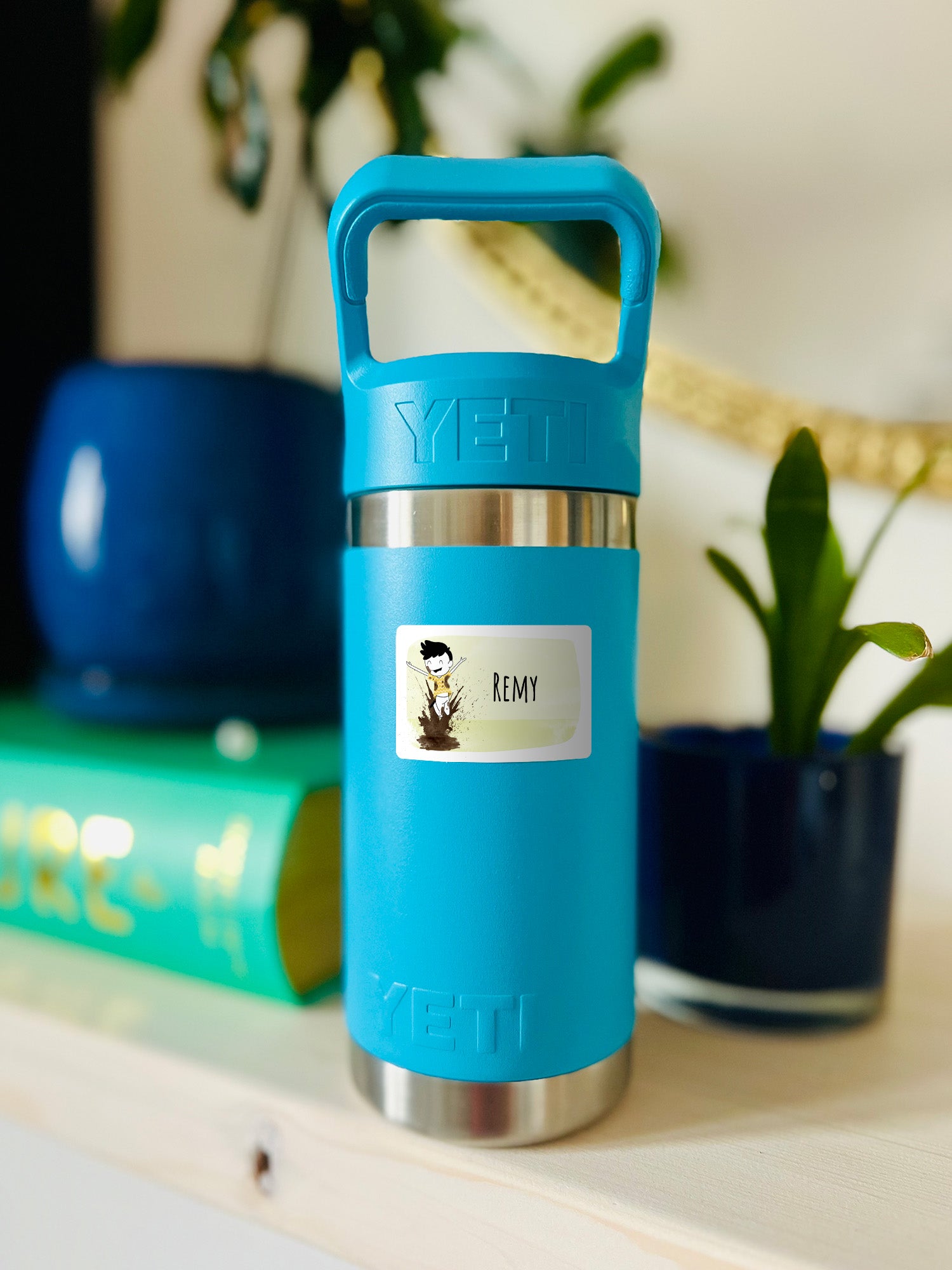 Peel, stick, and go! These awesome labels are made for smooth surfaces and ready for adventure. Waterproof, dishwasher-safe and durable. Label your water bottles, lunch boxes, toys, school gear, and anything else you can think of!
