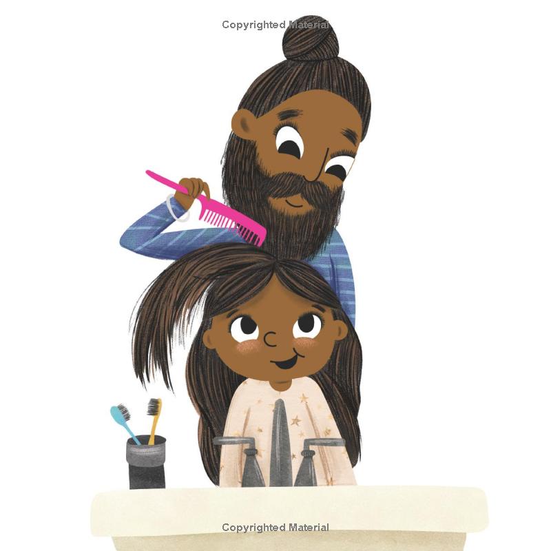 Every morning Papa combs through his daughter's waves like he does his ownâparting it down the middle, using coconut oil to get all the tangles out.Some days he braids her hair in two twists down the side of her face.