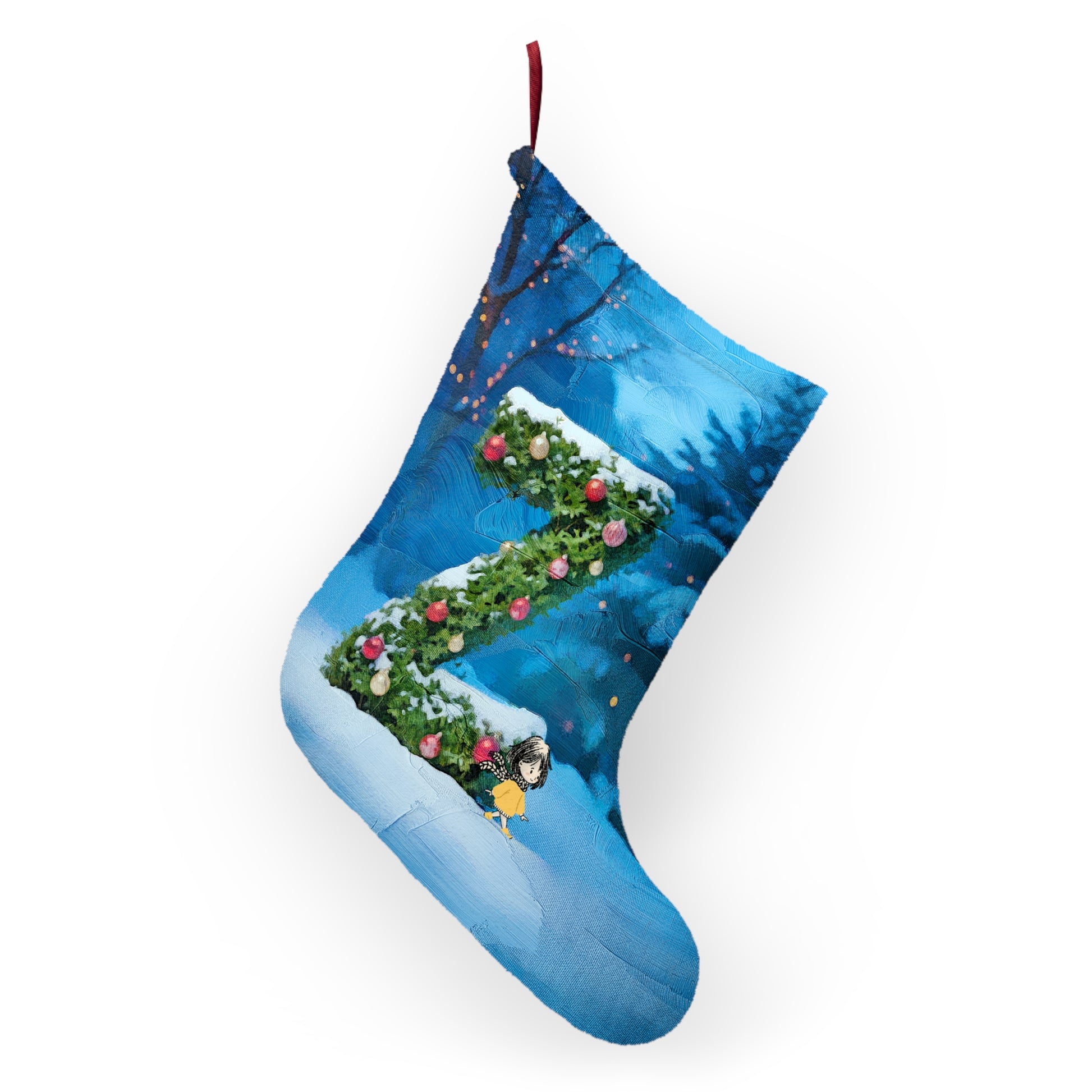 Each stocking features your personalized initial, set against a peaceful winter scene.